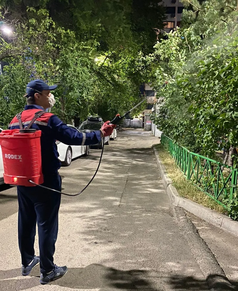 В акимате южной столицы уточнили, что работы будут осуществляться в ночное время: отсутствие прямого солнечного света способствует более длительному действию средств на вредителей за счет замедленного испарения.
