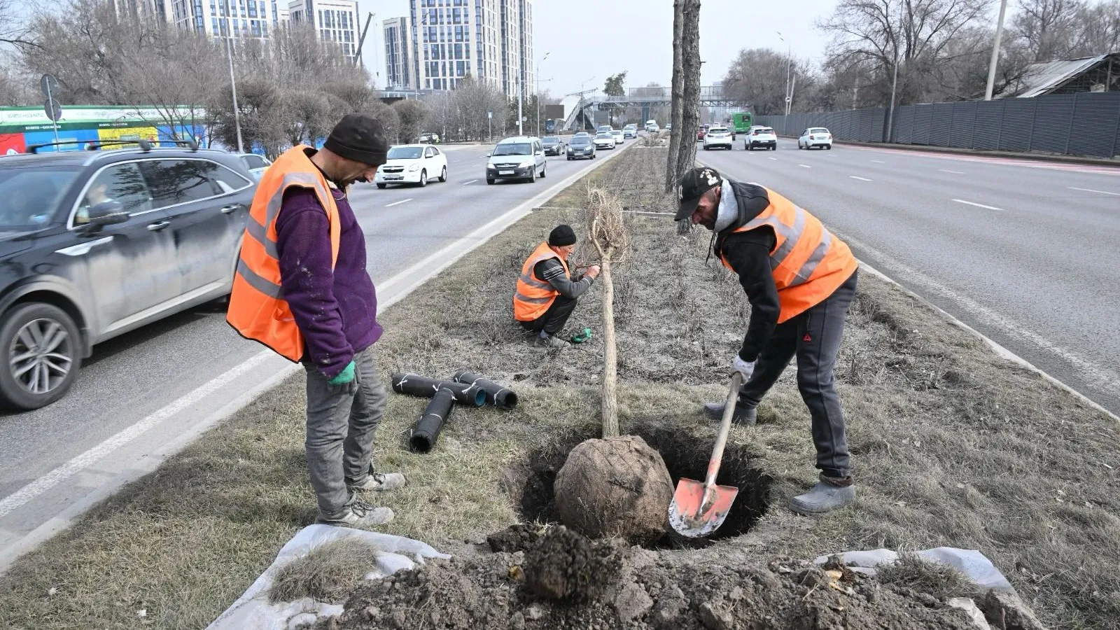"Аппарат акима района реализует проект по строительству системы полива с обеих сторон проспекта – на южной и северной, а также проводит озеленение центральной разделительной полосы".