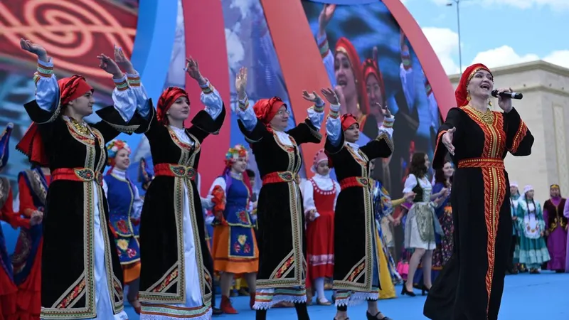 Праздничная программа Дня единства завершилась на высокой ноте – совместным исполнением песни о Казахстане и дружным хороводом, который стал живым символом продолжающейся дружбы и единства народов, живущих под общим шаныраком.