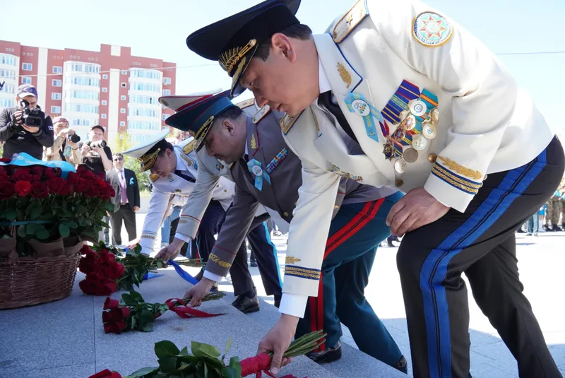 В торжественном мероприятии приняли участие ветераны Вооруженных сил РК, командиры воинских частей, начальники правоохранительных и государственных органов, представители департамента обороны, студенты военных кафедр вузов региона и участники военно-патриотических клубов "Жас сарбаз".