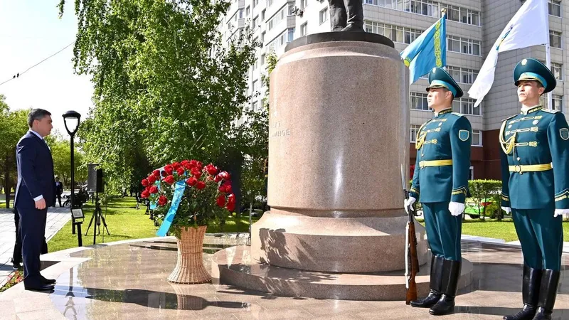 Бектенов возложил цветы к памятнику легендарному казахстанскому летчику Талгату Бегельдинову