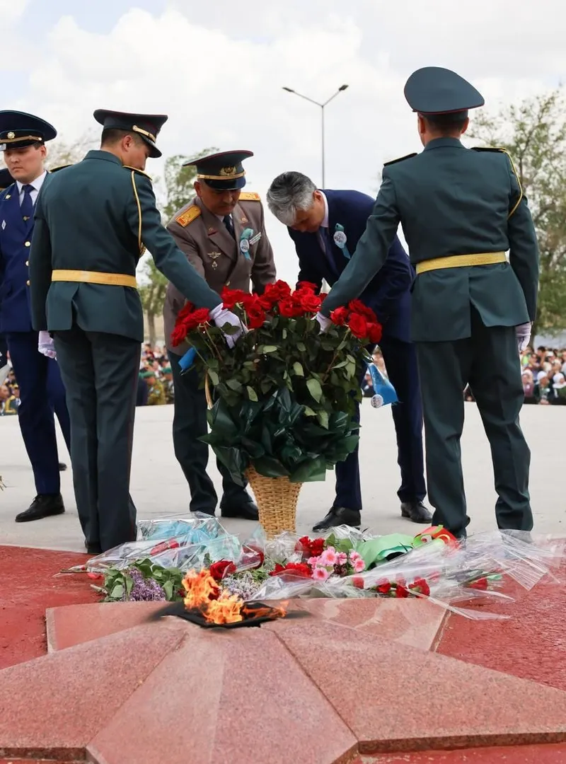 В частности, на Аллее Славы в Жезказгане состоялось торжественное мероприятие "Ұлы Жеңіс – ұрпаққа аманат". Собравшиеся сначала исполнили Государственный гимн Республики Казахстан. Затем почтили память погибших на войне минутой молчания и возложили цветы к Вечному огню. Аким области Дастан Рыспеков и представители интеллигенции почтили память боздаков, отдавших жизнь за Родину.