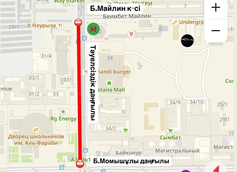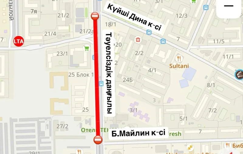 Также с 21 по 22 мая будет частично перекрыто движение на участке от улицы Б. Майлина до проспекта Б. Момышулы.