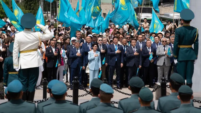Патриотическое мероприятие состоялось на высокогорном спортивном комплексе "Медеу". В церемонии приняли участие аким Алматы Дархан Сатыбалды, деятели культуры и спорта, представители общественности, АНК и молодежных организаций.