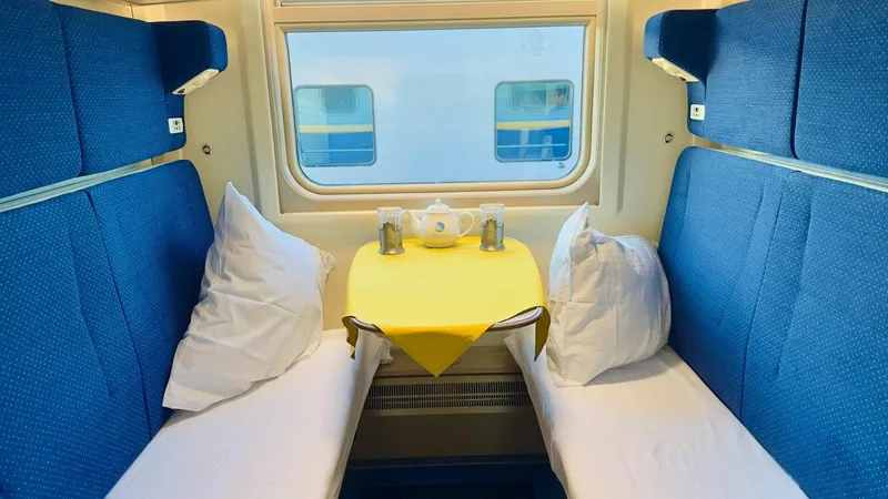 Каждый состав включает десять вагонов: пять купейных и пять плацкартных, рассчитанных на перевозку более 400 пассажиров в одном направлении.