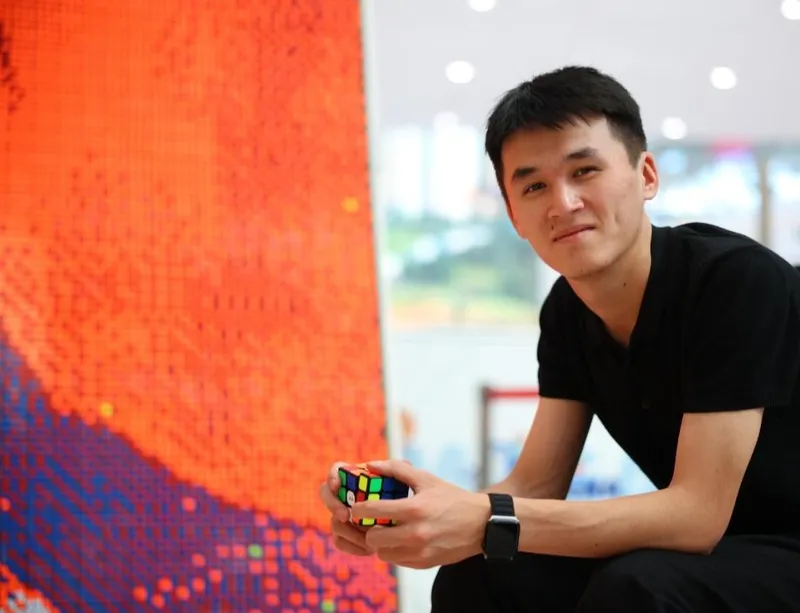 Портрет высотой три метра и шириной два метра спидкуберские команды собрали всего за пять часов. Со слов инициатора проекта Алихана Ертурсынова, кубик Рубика стал произведением искусства, объединяющим логику и креатив.
