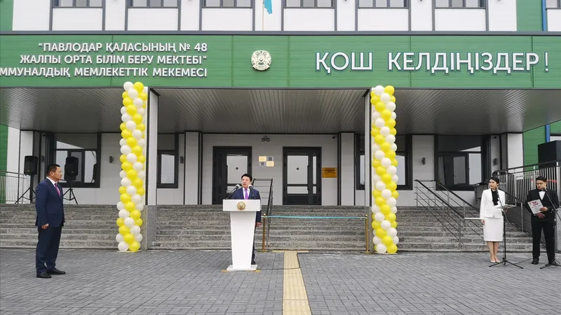 Общеобразовательное заведение построили в рамках программы "Келешек мектептері". Торжественную линейку посетили министр просвещения Гани Бейсембаев и аким Павлодарской области Асаин Байханов.