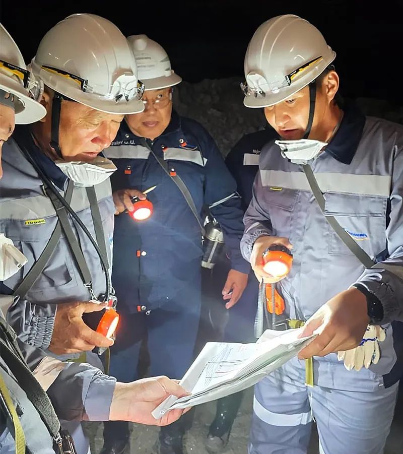 В присутствии посетителей были проведены замеры по всем скважинам. Результаты замеров газоанализаторами "Спутник-М1" показали отсутствие газов в рудничной атмосфере. Помимо этого, каждый работник рудника обеспечен ручным газоанализатором и датчиками позиционирования. Данные с геометок напрямую передаются в ДЧС области Ұлытау и Комитет промышленной безопасности для отслеживания перемещения шахтеров и техники на местах работы.