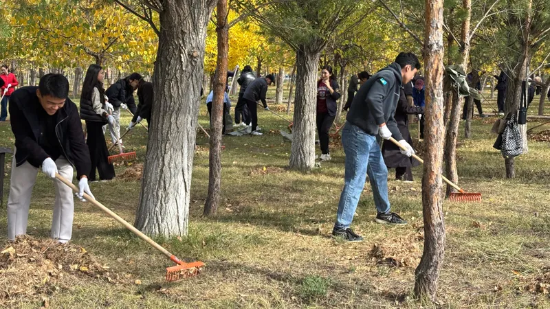 400 студентов вышли на субботник в парке "Жерұйык" в Астане