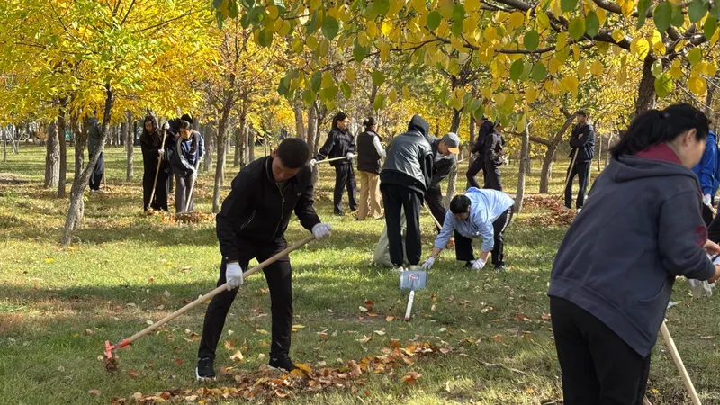 Уже к десяти часам утра в парке "Жерұйык" было оживленно: десятки студентов в перчатках с пакетами для мусора быстро заполнили аллеи и газоны, разбиваясь на небольшие группы и распределяя между собой участки работы.