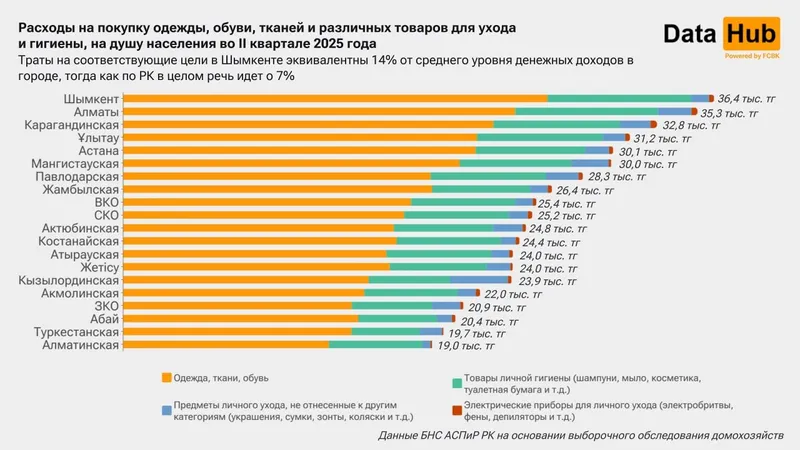 "Соответственно, расходы "на красоту" здесь эквивалентны сразу 14% от денежных доходов, тогда как в среднем по стране этот уровень в два раза ниже. Причем заметим, что подобная картина наблюдается довольно стабильно, по крайней мере в последние годы. В I квартале 2025 года жители города также лидировали и по абсолютным тратам на соответствующие цели, и по соотношению этих трат с денежными доходами. То же самое было по итогам полного 2024-го, а в 2020-2023 годах Шымкент хоть и уступал по абсолютным показателям Алматы, но опять же находился на первом месте в РК по соотношению с денежными доходами", – пишут аналитики.