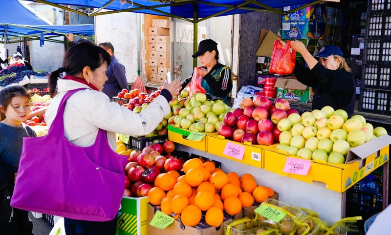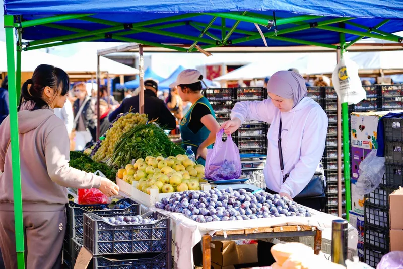 Утро субботы на парковке ипподрома "Казанат" началось шумно и оживленно. Едва часы пробили девять, как к прилавкам потянулись жители столицы с сумками и корзинами. Осеннее солнце мягко освещало длинные ряды продукции, а в воздухе смешивались ароматы меда, свежего хлеба и копченой рыбы.