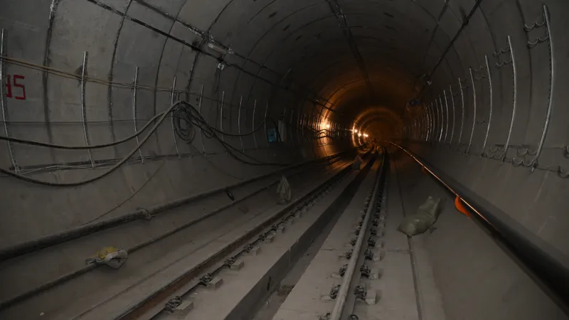 В готовом левом перегонном тоннеле длиной 1591 м завершается укладка "бесшумных" рельсов по бесстыковой и бесшпальной технологии. По правому тоннелю осталось пройти около 400 м, чтобы выйти на проектную отметку 1593 м, после чего здесь также начнутся путевые работы.