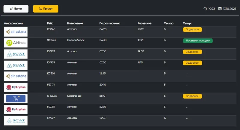 Сегодня, 17 октября 2025 года, утром в аэропорт Астаны вернулся самолет, вылетевший в Усть-Каменогорск. Мера была вынужденной из-за погодных условий, сообщает Zakon.kz.