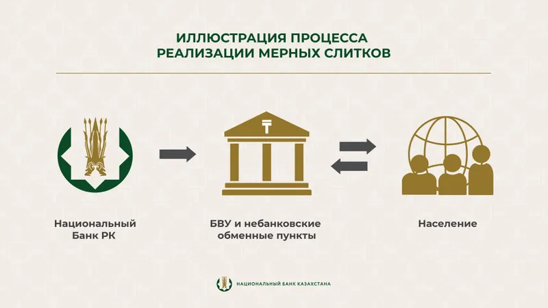 В монетарном регуляторе уточнили, что покупка и продажа мерных слитков для населения доступны через банки второго уровня, а также в отдельных небанковских обменных пунктах.