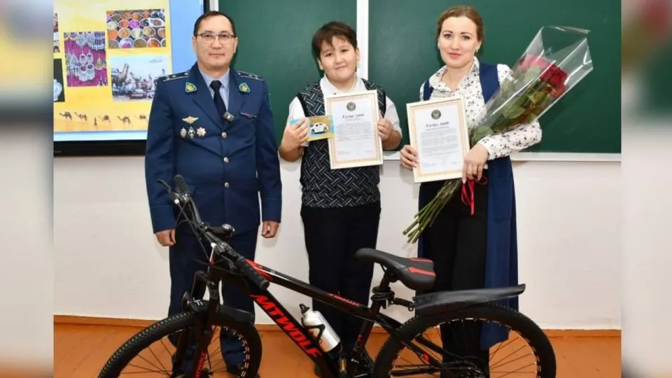 Велосипед и модель патрульной машины подарили школьнику из Кокшетау