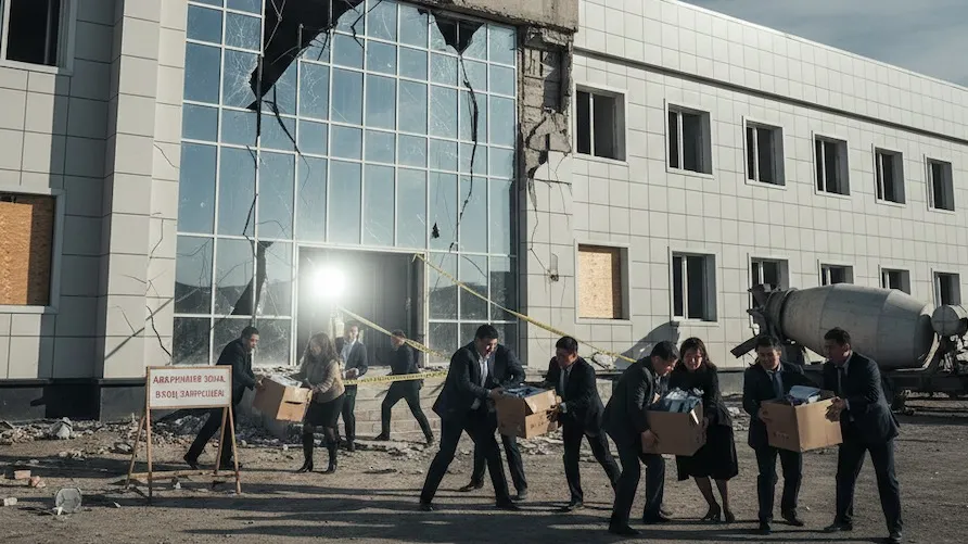 Скандал в Туркестанской области: за год новое здание акимата стало аварийным