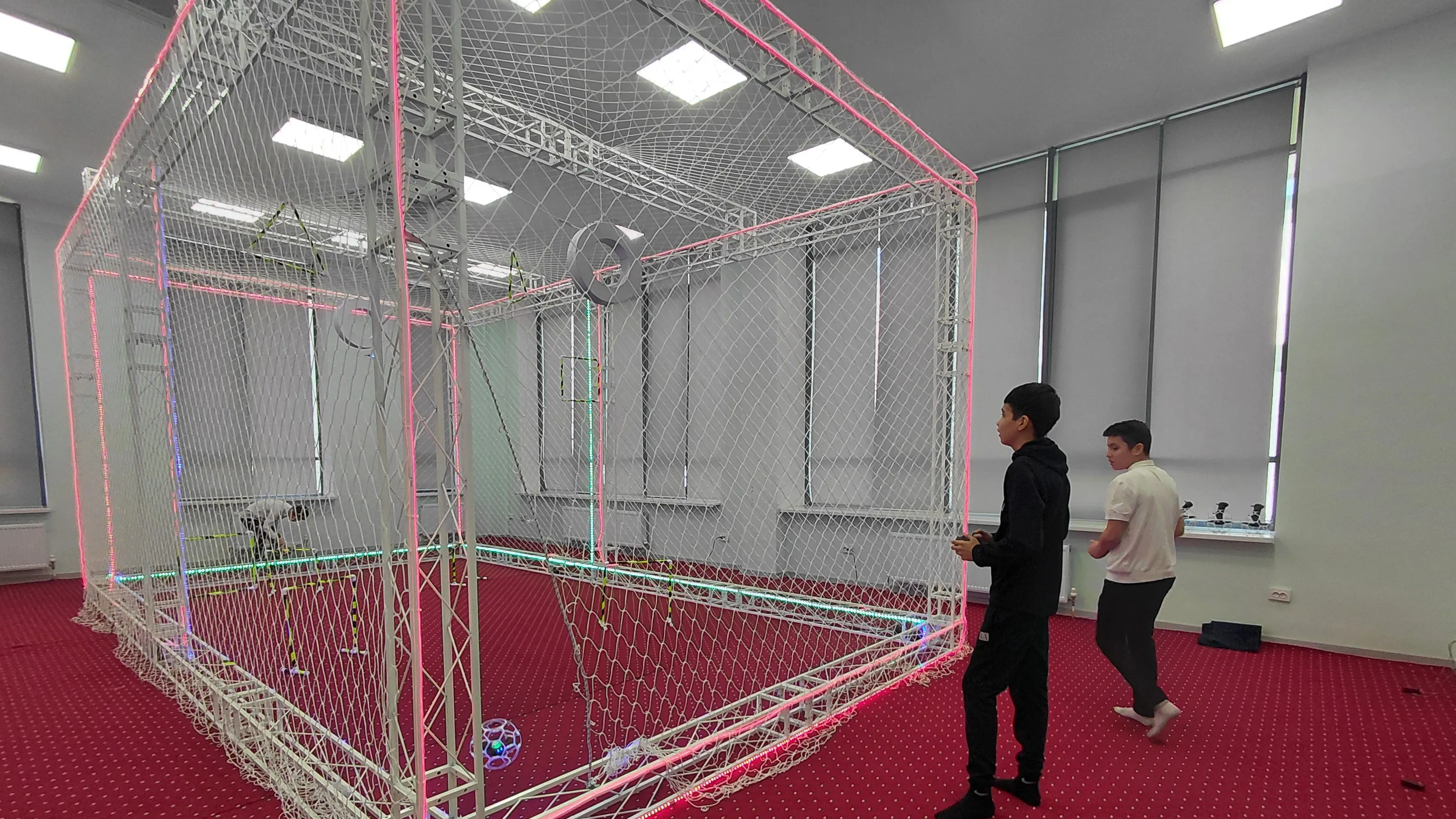 В кабинете "AirHub" есть собственная взлетная площадка, где школьники практикуются управлять дронами. Пока это просто забава для детей, далее начнется более сложный этап – написание программ для дронов.