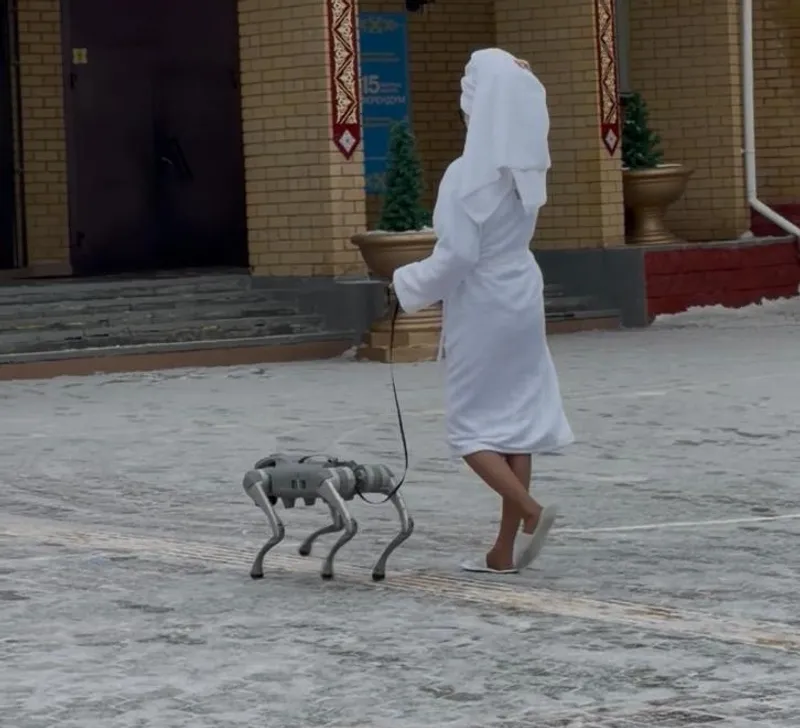 На одном из избирательных участков в Астане внимание избирателей привлек необычный перформанс. В рамках республиканского референдума по проекту новой Конституции на голосование пришла молодая активистка в белом халате и домашних тапочках в сопровождении робота-собаки.