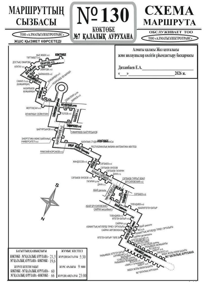 О том, что новый автобусный маршрут №130 запустят по ключевым улицам Алматы, стало известно 1 апреля 2026 года.