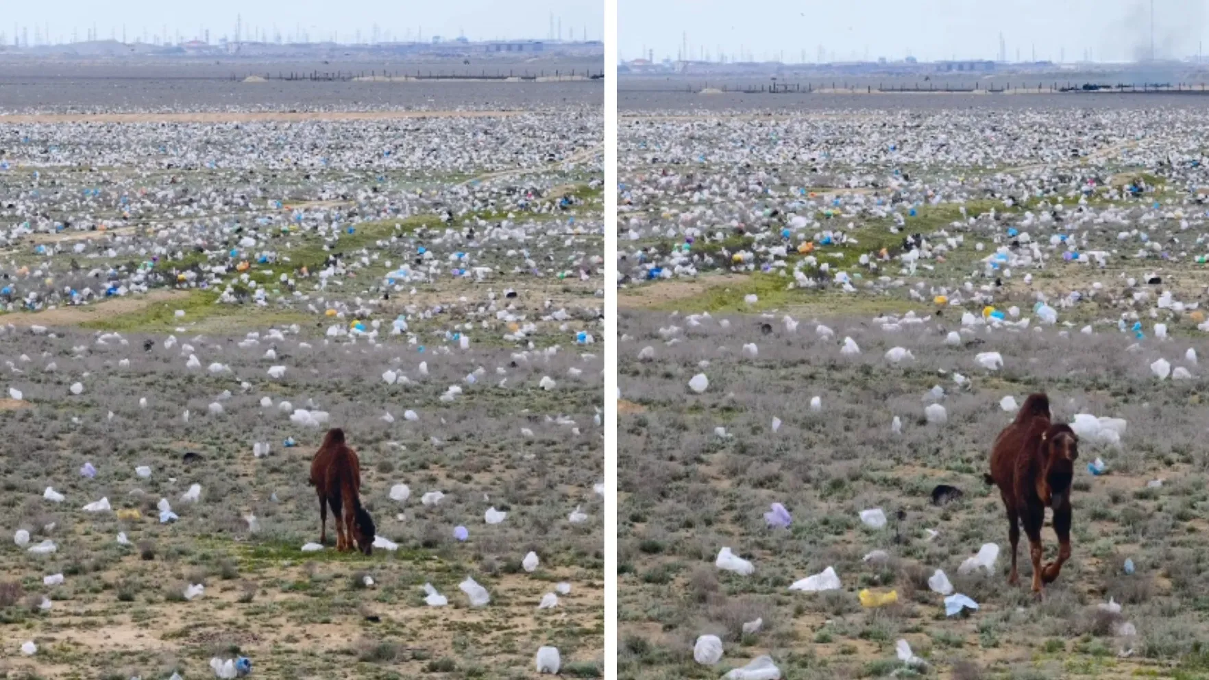 Известный экоактивист и блогер Азамат Сарсенбаев показал удручающую картину возле Актау. В кадре видео печальная сцена: верблюд бродит по степи, покрытой пластиковыми отходами, сообщает Zakon.kz.