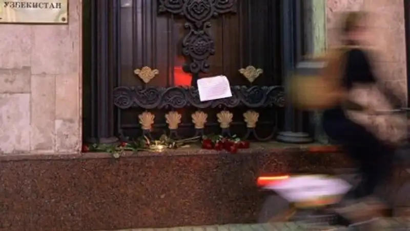 Алматинцы несут цветы к зданию посольства Узбекистана
