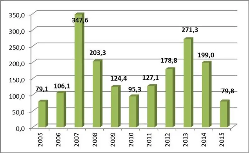 Рисунок 1. Валовый приток иностранных прямых инвестиций в РК из Турции