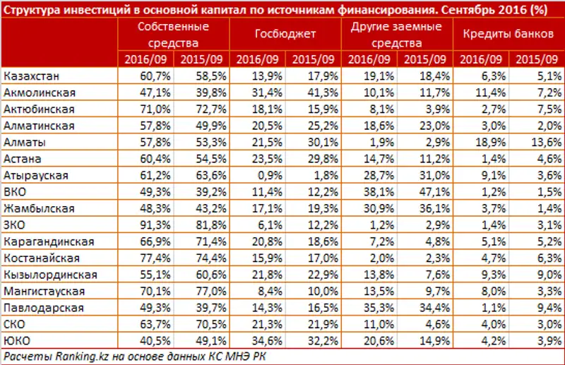 Вес частного капитала вырос в 9-ти региональных инвестпортфелях. В то же время долю бюджетных средств в инвестициях в основной капитал сократили 13 регионов.