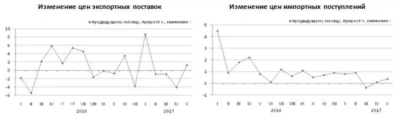 Изменение цен экспортных поставок и импортных поступлений в январе-мае 2017 года