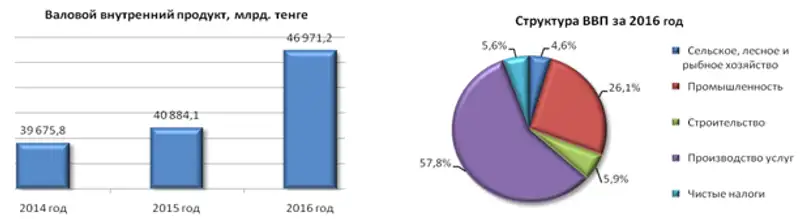 Индекс физического объема (ИФО) Валового внутреннего продукта (ВВП) за 2016 год (по отчетным данным) по отношению к соответствующему периоду предыдущего года составил 101,1%. В структуре ВВП доля производства товаров занимает 36,6%, услуг - 57,8%.