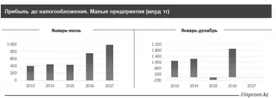 Таким образом, если состояние экономики не покажет резкого ухудшения, малый бизнес в этом году может превысить показатель 2016 года, когда предприниматели зафиксировали чистый результат до вычета КПН в 1,9 триллиона тенге - самый высокий годовой показатель деятельности за последние 5 лет.