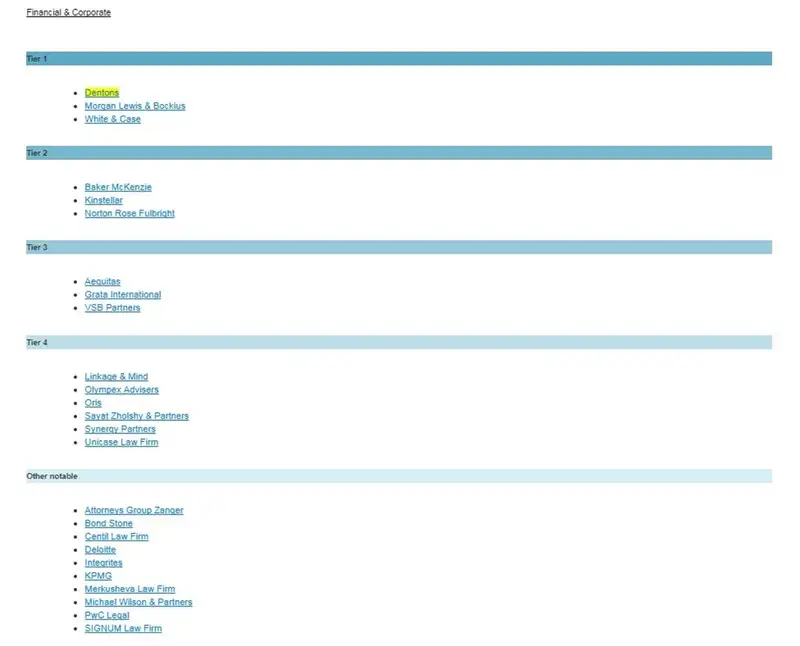 В результате экспертизы IFLR1000, рейтинг по обоим направлениям практики возглавили Dentons и Morgan Lewis & Bockius. Отметим, что в рейтинге практики Финансового и корпоративного права к вышеупомянутым фирмам присоединилась White & Case. Полный список вы можете увидеть на изображениях, либо пройдя по ссылке: https://www.iflr1000.com/Jurisdiction/Kazakhstan/Rankings/188#rankings (для просмотра вам необходимо зарегистрироваться на сайте IFLR1000).