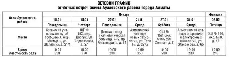 Количество остановочных комплексов в Ауэзовском районе по состоянию на ноябрь 2017 года составляет 177, из них в текущем году будут обустроены 100 остановок (инвесторами - 30, по линии районного акимата - 10, СМЭУ - 60: 25 - установлено, 35 - в работе).