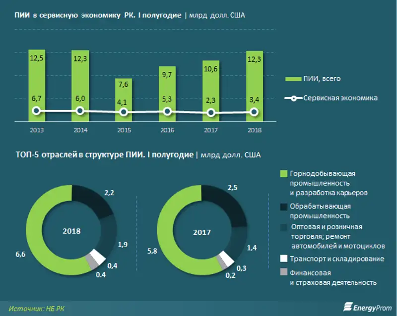 Казахстанский инвестиционный климат благоприятнее общемирового: инвестиции в экономику РК только за первое полугодие 2018-го выросли на 16%, до 12,3 млрд долл. США. Эффект диверсификации инвестиций достигается путём направления потоков в сервисную экономику.