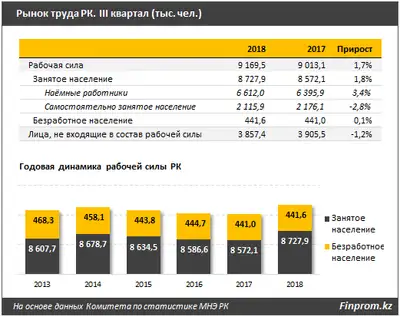 Численность рабочей силы на конец III квартала достигла 9,2 млн человек, прирост составил 1,7% год-к-году.