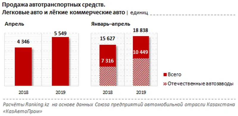 Продажа автотранспортных средств за январь–апрель 2019 года