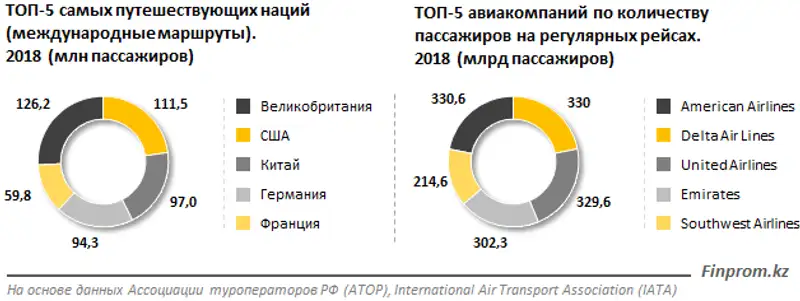 В ТОП-5 авиакомпаний по количеству пассажиров на регулярных рейсах в 2018 году вошли American Airlines (330,6 млрд), Delta Air Lines (330 млрд), United Airlines (329,6 млрд), Emirates (302,3 млрд) и Southwest Airlines (214,6 млрд).