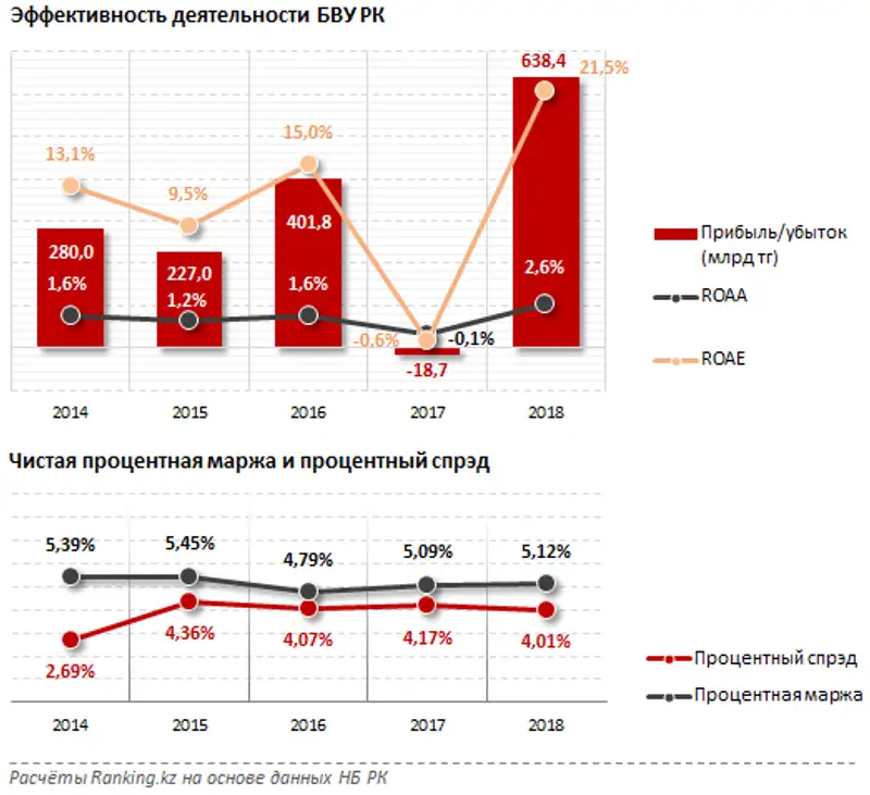 На конец 2018 года ROAA и ROAE банков находилась на уровне 2,6% и 21,5% соответственно; годом ранее показатели находились на уровне −0,1% и −0,6%.