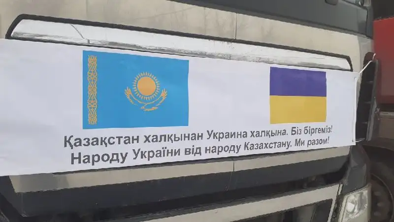 Сегодня мы отправляем первый наземный караван, состоящий из двух машин, который перевезет приблизительно 40 тонн груза. Его собрали казахстанцы для народа Украины. Маршрут будет пролегать через шесть стран и через порт Курык. В этих фурах нескоропортящиеся продукты питания: сыпучие крупы, макароны, консервы, детское питание, а также влажные салфетки, гигиенические прокладки, памперсы для детей и взрослых, детская одежда и обувь. Этот груз идет прямо в Киевскую область, думаем, дней 10 займет дорога. Чрезвычайный и полномочный посол Украины в РК Петр Врублевский