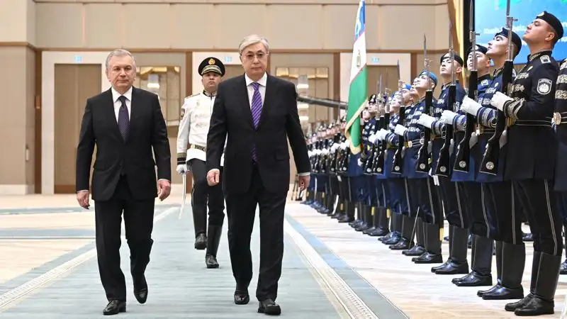 Как отмечается на сайте Акорды, лидеры двух стран приняли приветственный рапорт начальника роты почетного караула, прозвучали государственные гимны Казахстана и Узбекистана.