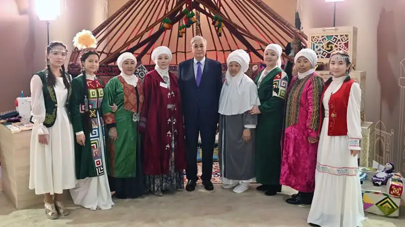 В представленной Касым-Жомарту Токаеву инсталляции "Киіз үй" были продемонстрированы мастер-классы для молодежи по искусству вязания, валяния кошмы, плетения, прядения ворса, прессования сырмака и т.д.