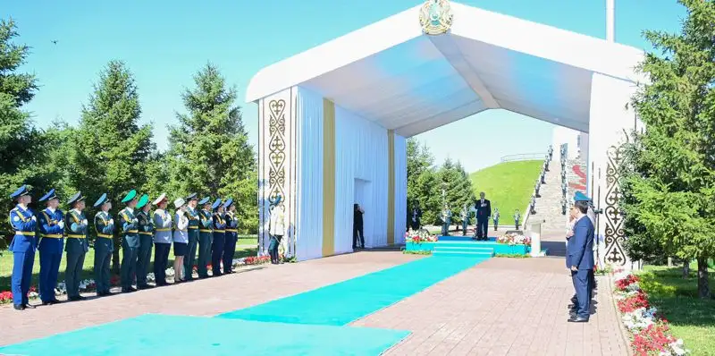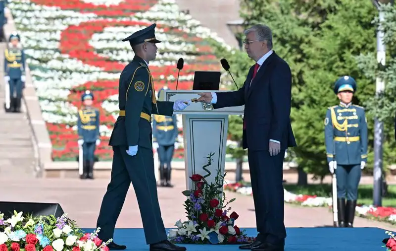 Как отмечено на сайте Акорды, начальник роты Почетного караула отдал президенту рапорт о готовности к церемонии. Затем прозвучал Государственный гимн и был поднят Государственный флаг Республики Казахстан.