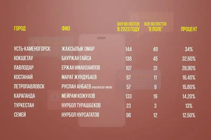 Как часто городские акимы Казахстана выходят из кабинетов