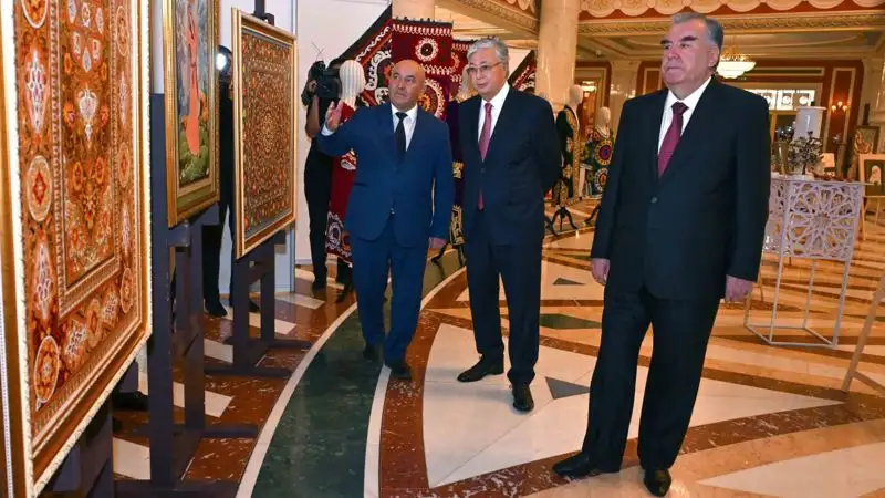 Касым-Жомарт Токаев и Эмомали Рахмон осмотрели выставку народного творчества Таджикистана, сообщает Zakon.kz.