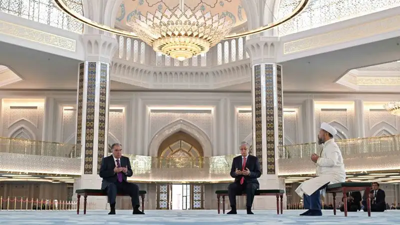 Верховный муфтий Казахстана Наурызбай кажы Таганулы прочитал суры из Корана и пожелал народам двух стран мира, процветания и благополучия.