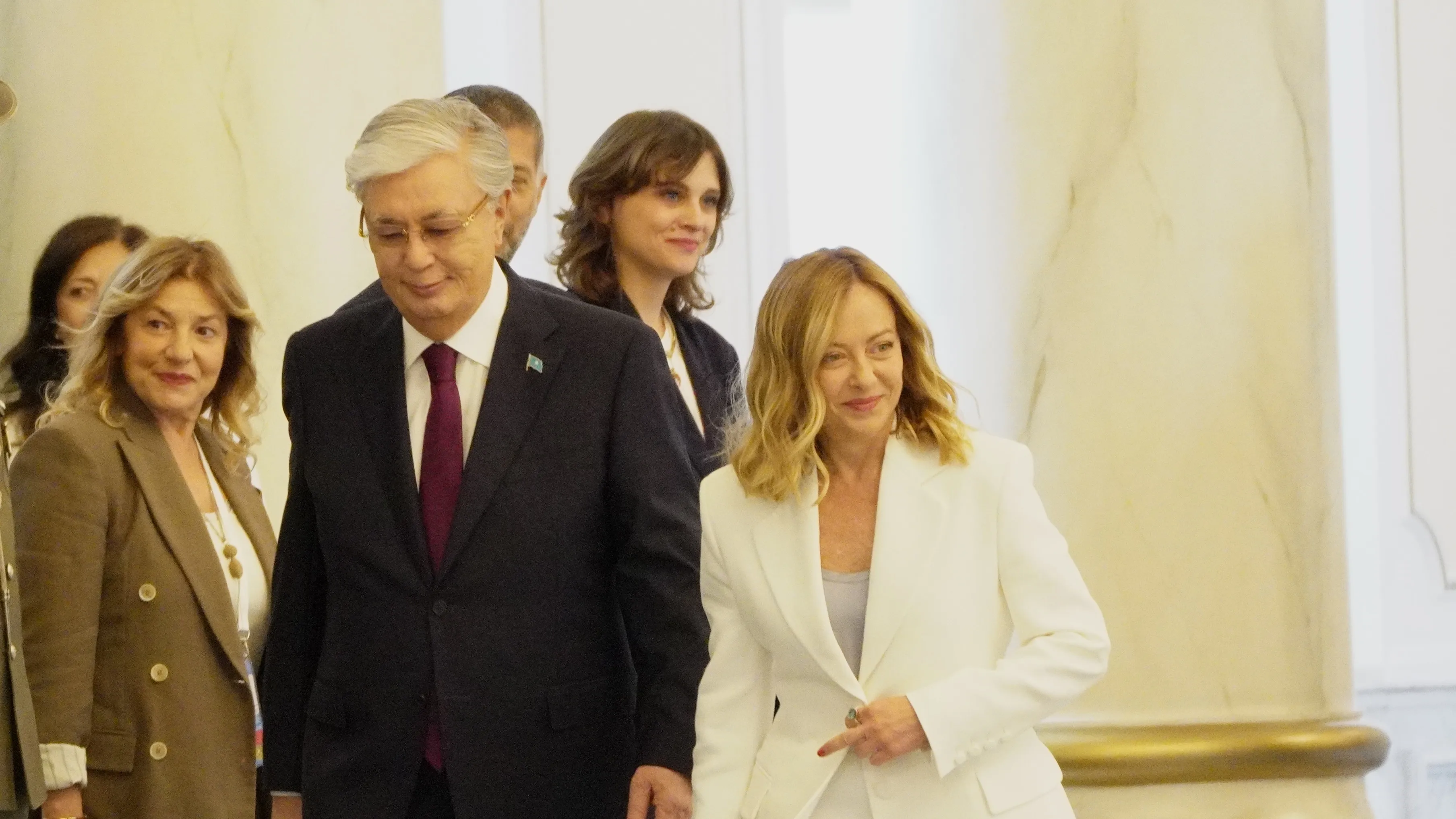 Премьер-министр Италии Джорджа Мелони прибыла в Казахстан с официальным визитом 29 мая 2025 года. Глава государства Касым-Жомарт Токаев тепло встретил ее в столичном аэропорту, где они провели короткую беседу.