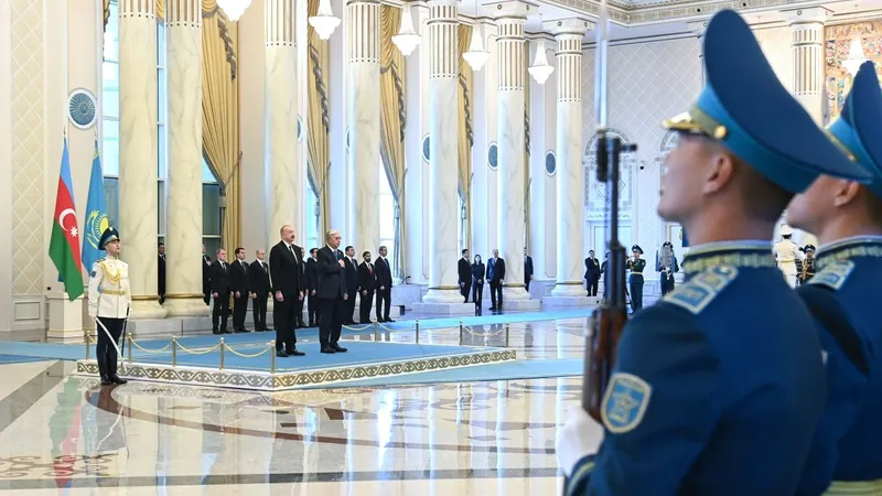 Официальная церемония встречи президента Азербайджана, прибывшего в Казахстан с государственным визитом, состоялась в Акорде.