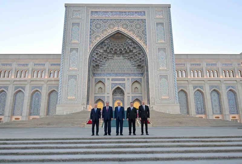 "Главы государств Касым-Жомарт Токаев, Шавкат Мирзиёев, Ильхам Алиев, Садыр Жапаров и Эмомали Рахмон прибыли в Центр исламской цивилизации Ташкента", – говорится в сообщении.