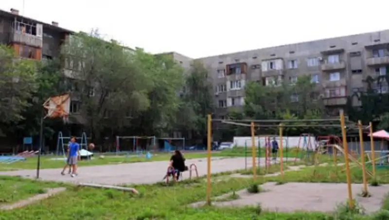 Соседи с опаской говорили о Кулекбаеве, потому как боятся, что могут вернуться те, кто знает его. Сейчас в подъезде и во дворе очень тихо, а выбитые окна во время штурма уже восстановлены.