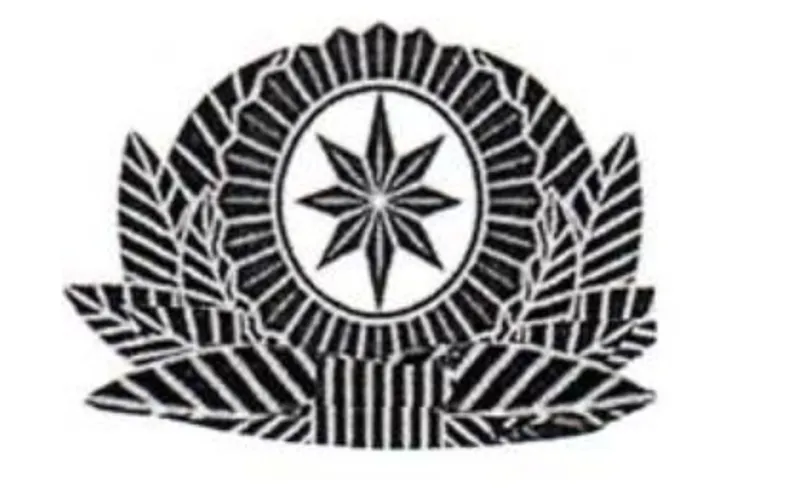 Кокарда на головной убор имеет форму горизонтального овала. В центре кокарды на головной убор располагается вертикальная овальная розетка. В центре розетки расположена восьмиконечная, вытянутая звезда золотистого цвета, разделяющая овал на две равные части.